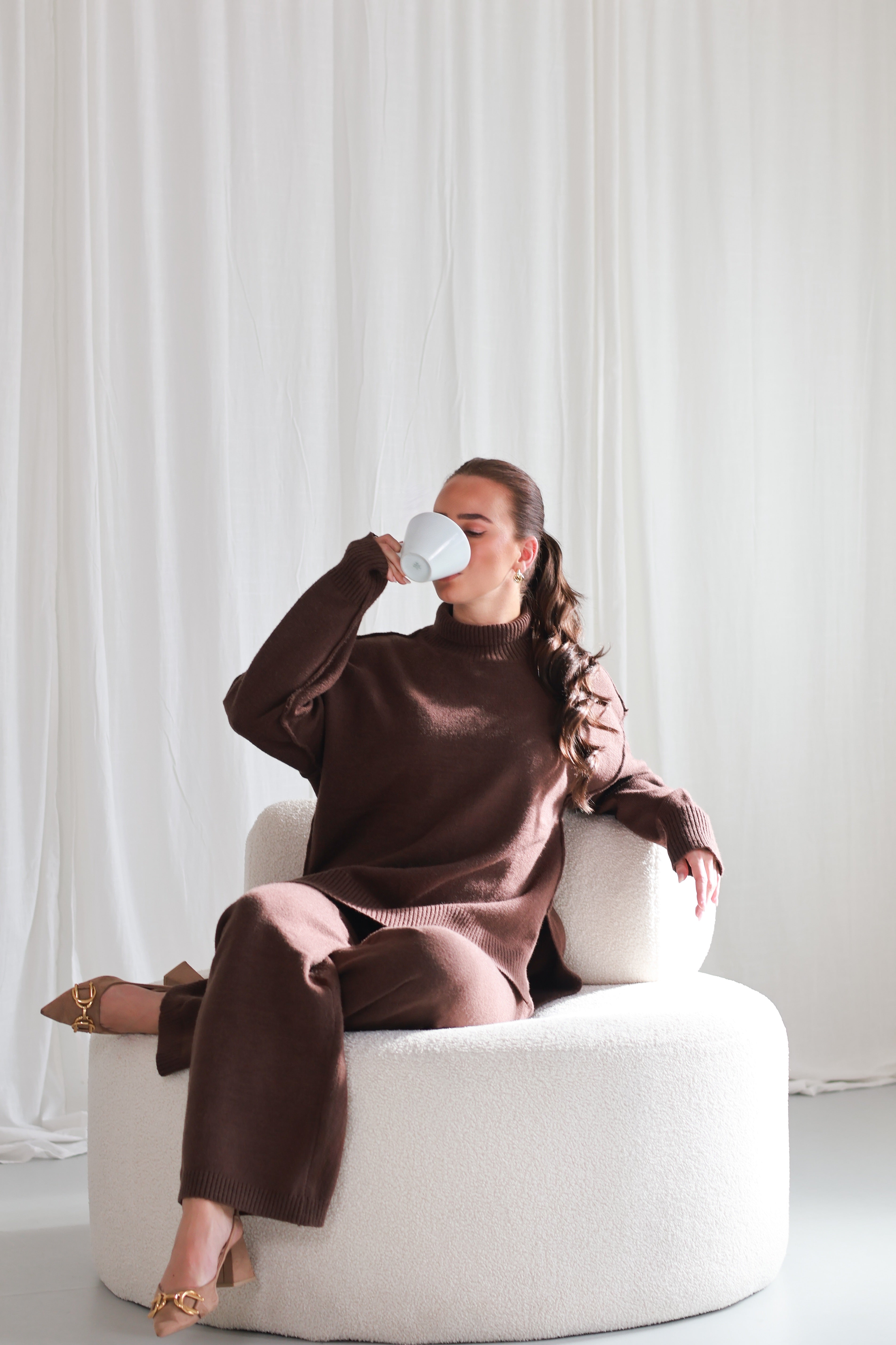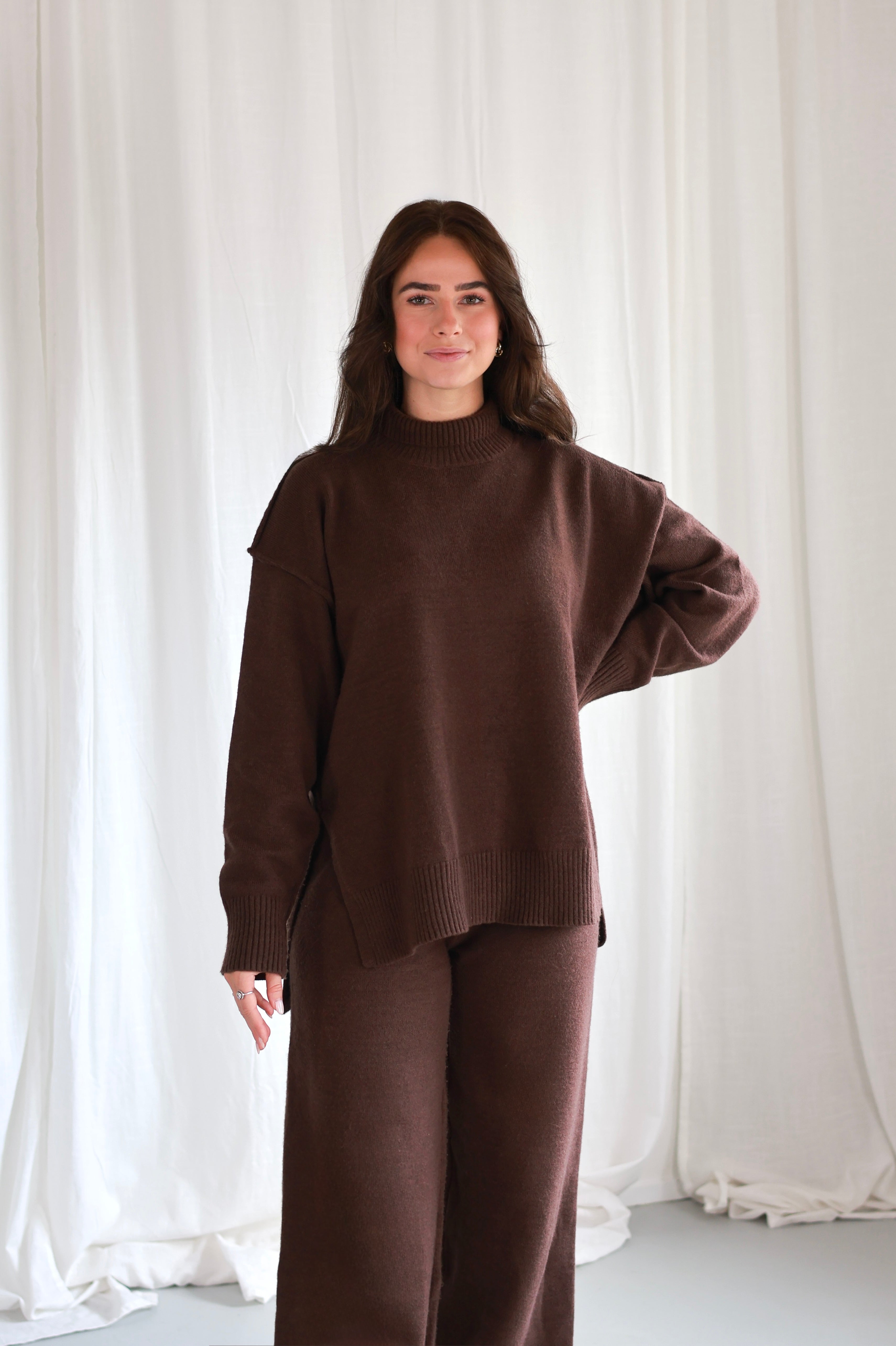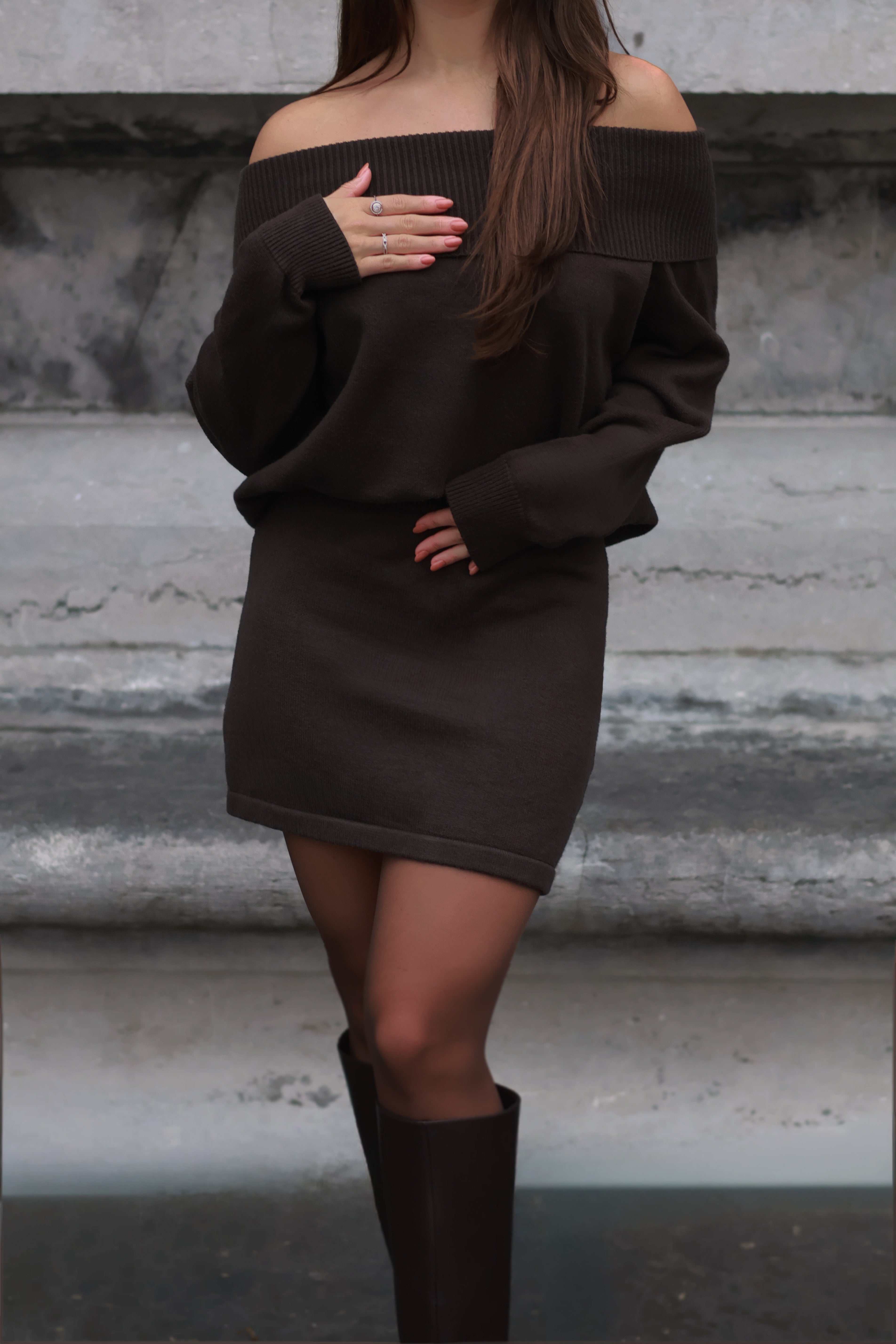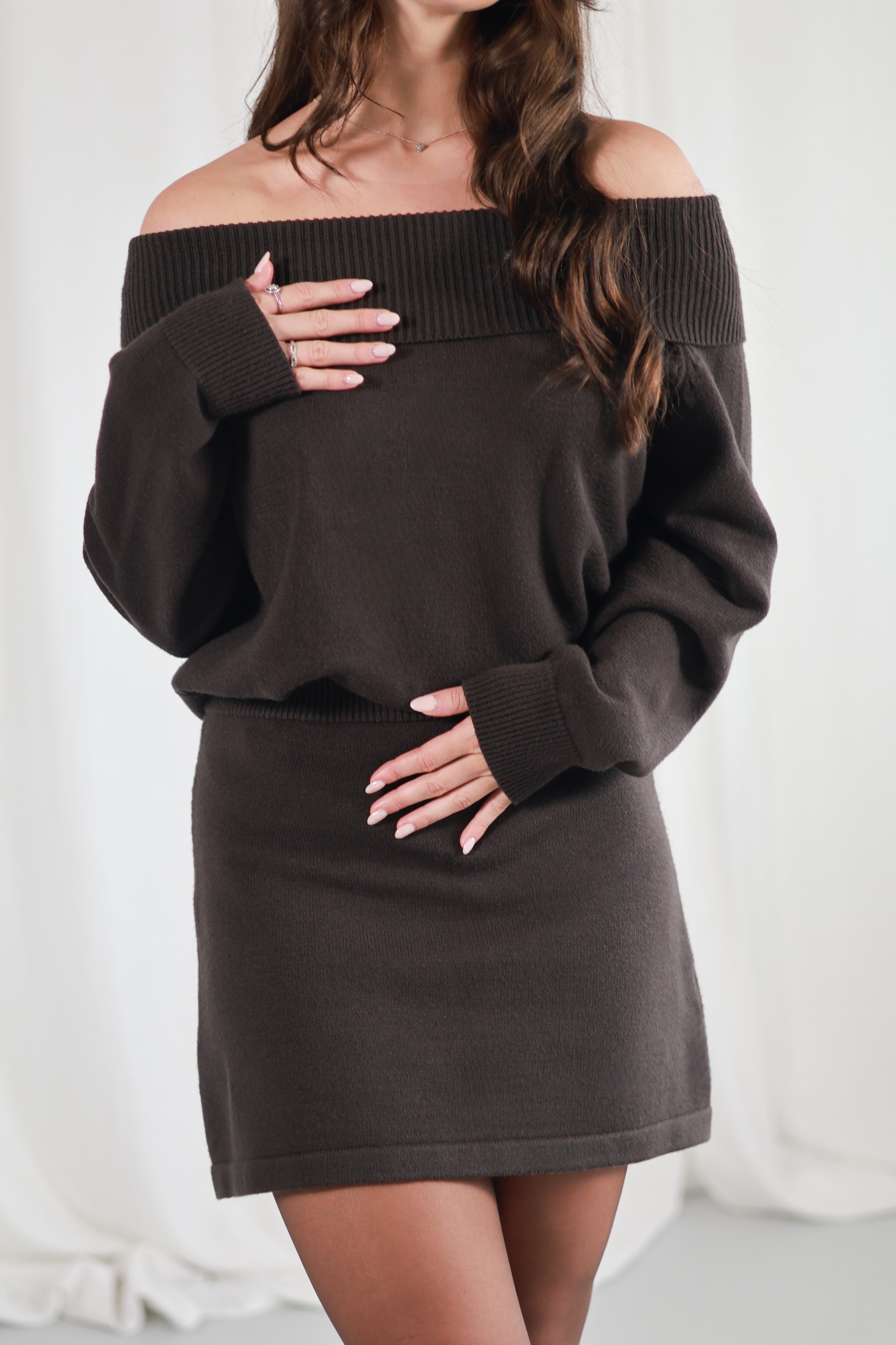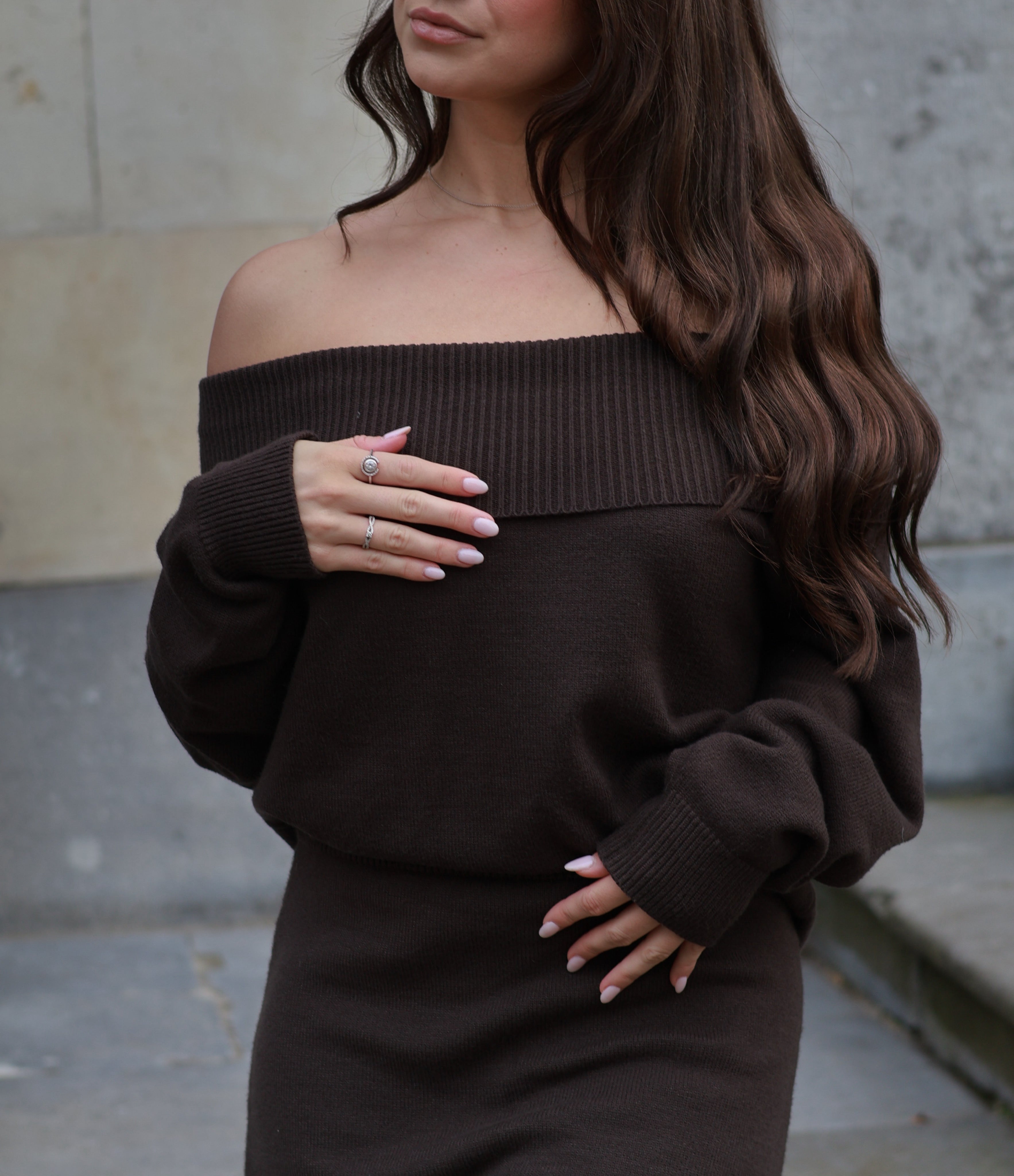 1 beoordelingCosy Off-Shoulder Set | Donkerbruin