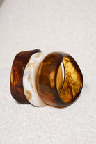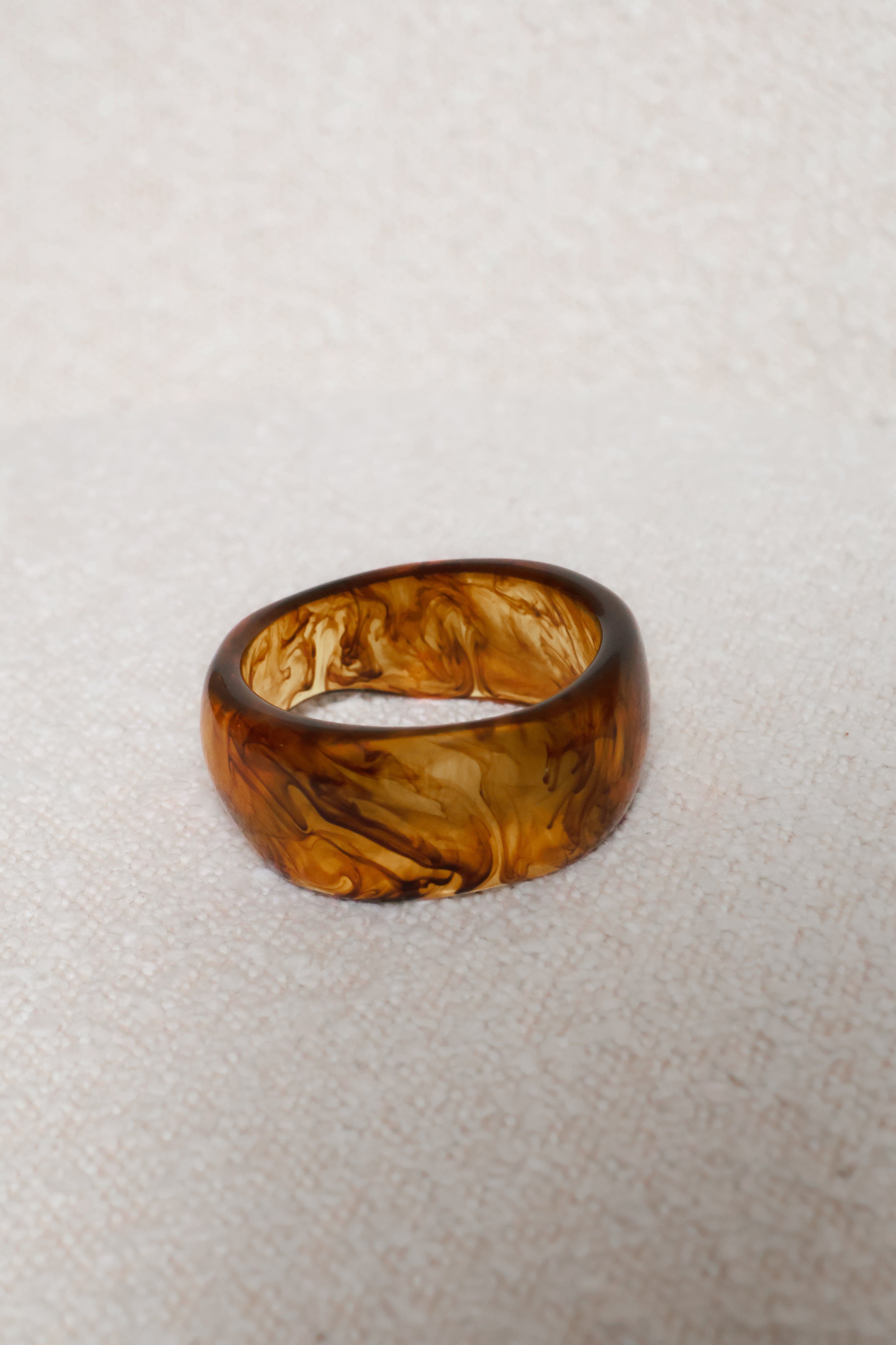 De rijke gemarmerde patronen en zachte vormen geven elke outfit een moderne, organische touch.