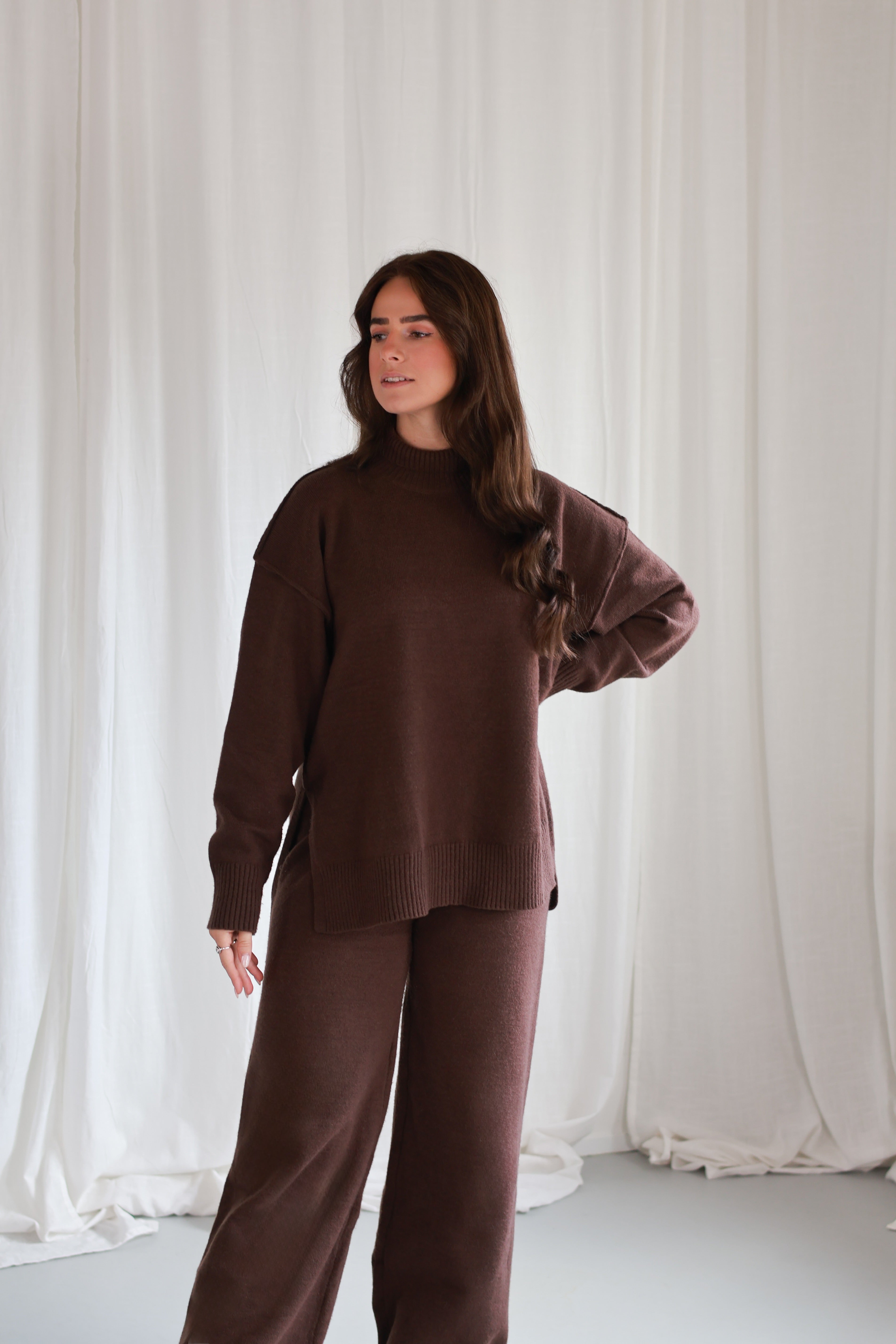 Deze chocolate brown set is gemaakt voor dagen waarop je ultiem comfort wilt voelen. De rijke, warme bruine kleur geeft de set een knusse uitstraling, perfect voor het najaar en de winter.