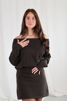 Deze off-shoulder set is niet voor niets onze absolute bestseller. De combinatie van een zachte dikke stof, een elegante pasvorm en het subtiel vrouwelijke off-shoulder detail maakt dit tot de populairste set bij onze klanten.