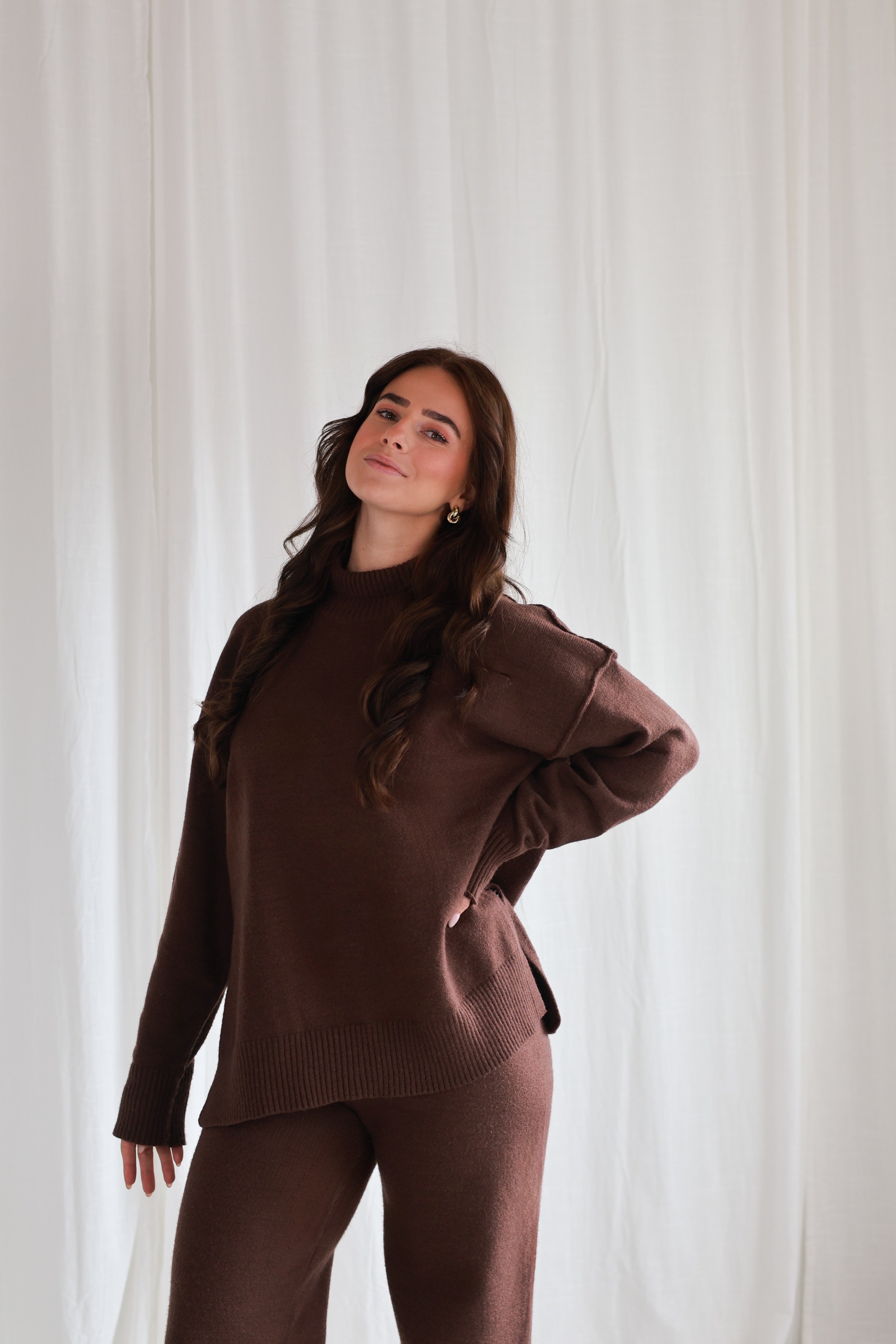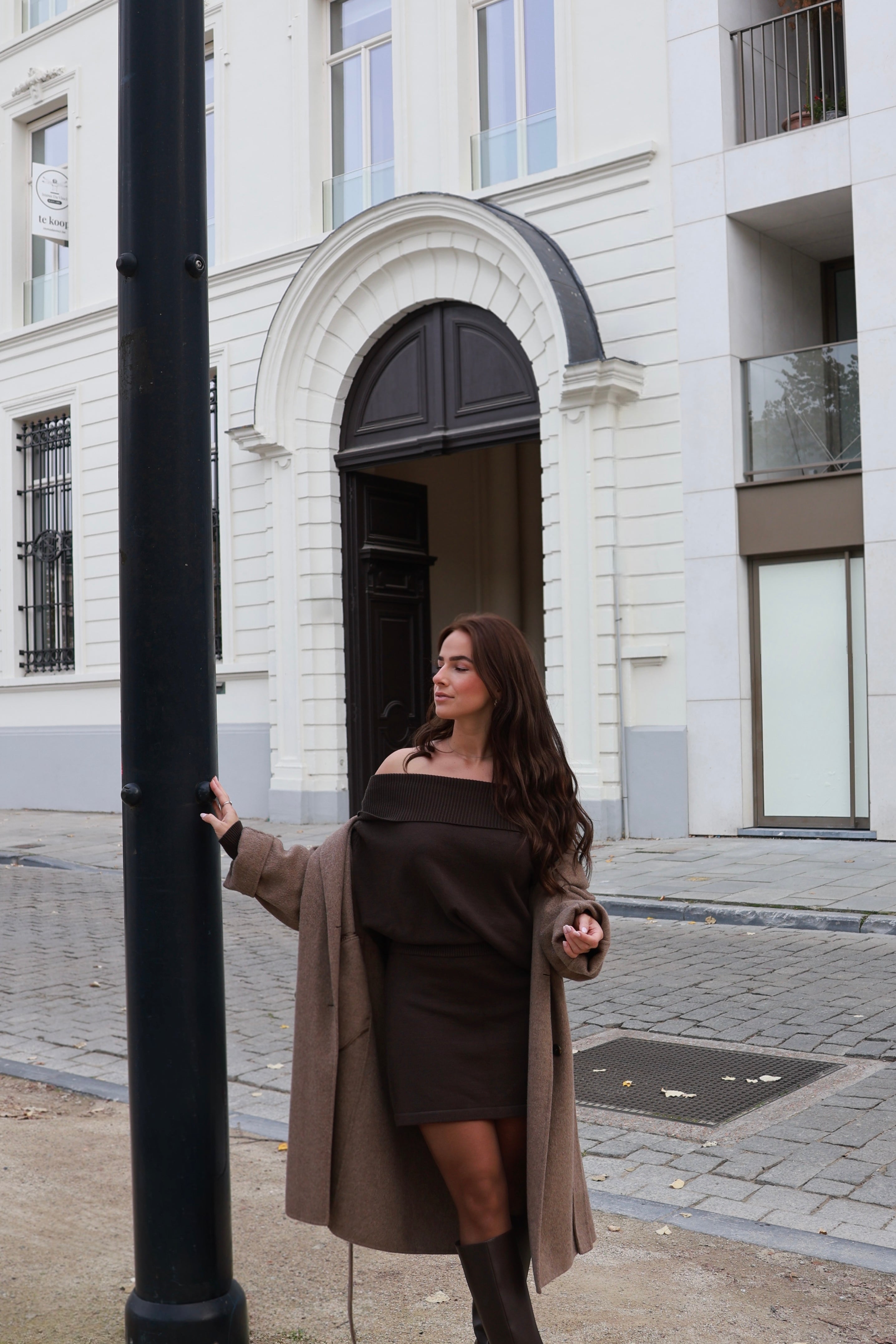 1 beoordelingCosy Off-Shoulder Set | Donkerbruin